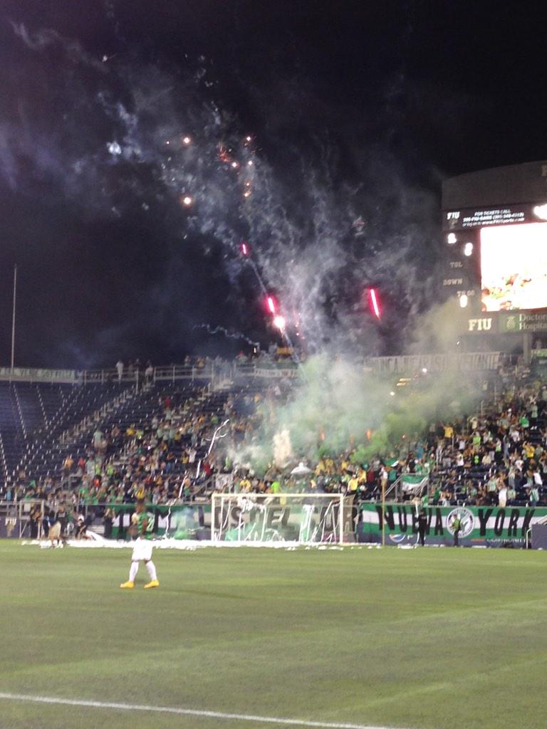 Al inicio del segundo tiempo hubo turbulencias (?) en la grada del sector Sur por la pólvora, el humo de colores y los rollos de papel desplegados sobre el área chica del portero 'azulgrana'. El juego se suspendió por unos minutos hasta que la gente de logística del estadio se encargaran de 'limpiar' la zona caliente (?) del área 'cuerva'.