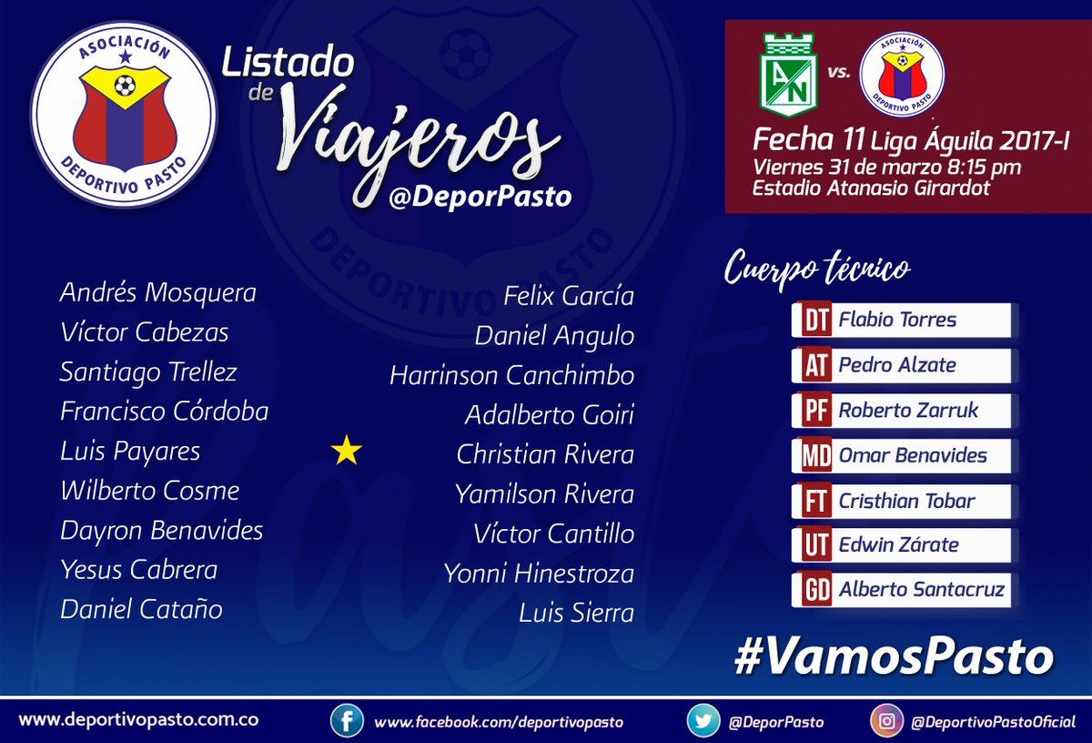 Pasto (1): Andrés Mosquera; Yonni Hinestroza, Félix García, Luis Payares y Harrison Canchimbo; Cristian Rivera (Daniel Cataño, 78'), Luis Sierra, Víctor Cantillo y Yesus Cabrera; Santiago Tréllez (Daniel Angulo, 77') y Wilberto Cosme (Yamilson Rivera, 27').